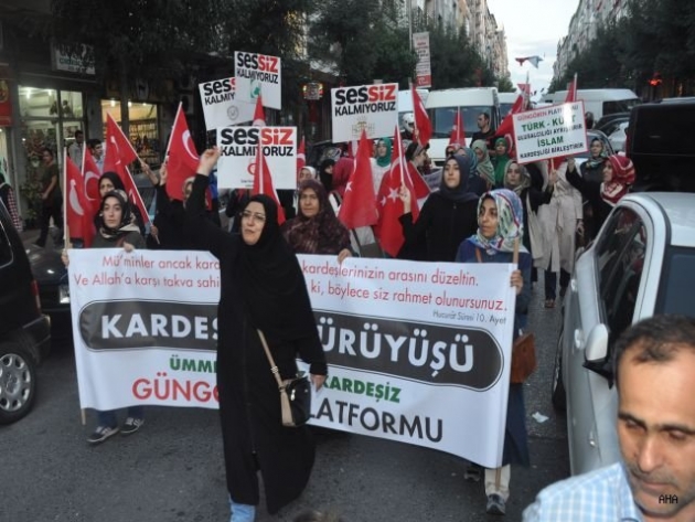 Güngören Parkda İstiklal marşı ile başlayan yürüyüş inönü caddesi posta caddesi ile Güngören köy içinde bulunan aliya izzet begoviç parkında son buldu. Yürüyüş esnasında Ansar vakfı, Anadolu gençlik derneği, İlim yayma cemiyeti gbi yaklaşıl 35 dernek bu yürüyüşe destek verdi. Yürüyüş esnasında Pkk terörüne karşı sloganlar atılırken lanetler okundu. Amerika ve Almanya'da sloganlarlarla kınandı. Tediden yetmişe çok sayıda Güngören'linin katıldığı yürüyüş Aliye izzet begoviç parkında okunan mevlid ile son buldu. Güngören emniyet müdürlüğüne bağlı ekipler trafaik ve çevre güvenliğini alarak kuş uçurtmazlarken İlçe emniyet müdürü Murat Bingöl kortejin güvenliğinin alınmasını bizzat yönetti.
